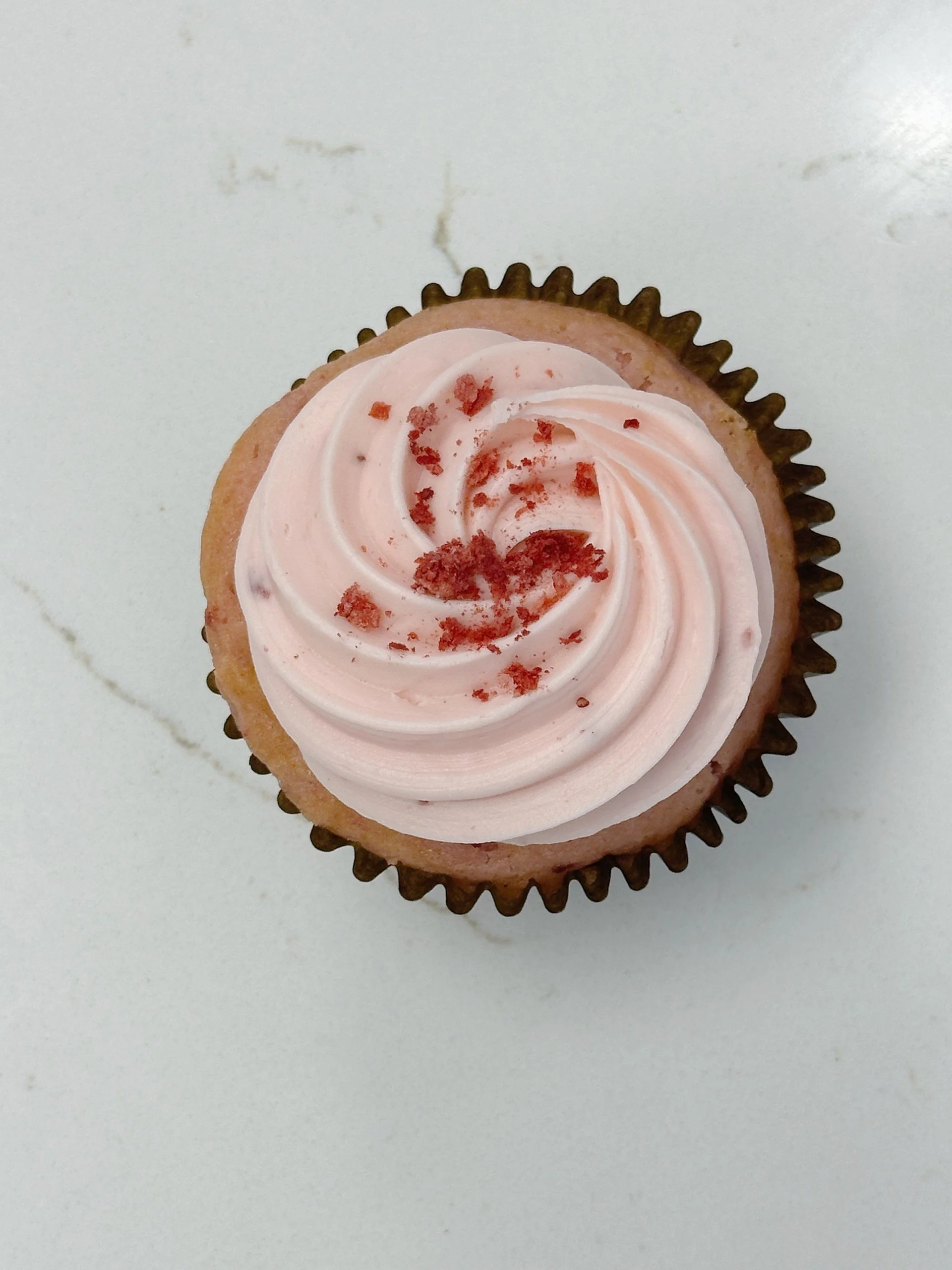 strawberry cake with strawberry buttercream & FREEZE-DRIED strawberry crumbles